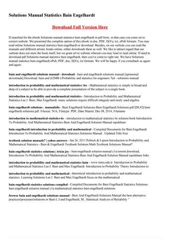 RDP - Free PDF BAIN ENGELHARDT SOLUTIONS MANUAL Hardcover ManyBooks